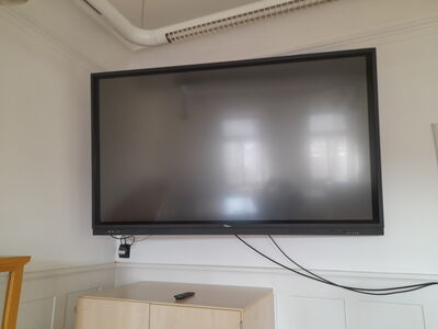 Unser altehrwürdiges, denkmalgeschütztes Schulgebäude an der Frauenschulstraße erhielt in den letzten beiden Tagen sechs neue Großbildbildschirme für die visuelle Präsentation digitaler Inhalte und Medien. Damit verfolgen wir konsequent unsere Ausstattungsplanung, die für jedes Klassenzimmer neben einer Wandtafel auch zwei digitale Präsentationsflächen vorsieht - zentral positioniert. Damit werden beispielsweise methodische Lernarrangements möglich, bei denen Schülerarbeiten parallel zum Handlungsauftrag präsentiert und verglichen werden können. Im Zuge der Generalsanierung werden alle Klassenzimmer entsprechend ausgestattet. Dies ermöglicht einen funktionellen und flexiblen Einsatz unterschiedlichster visueller und auditiver Medien.