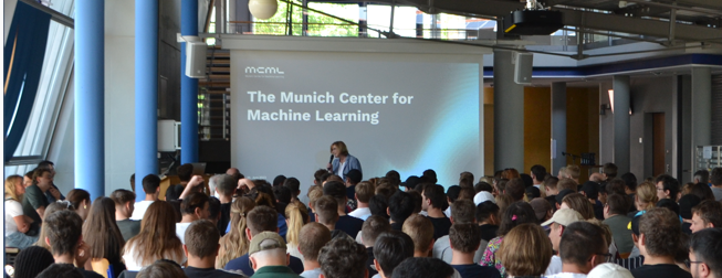 Zunächst begrüßten die stellvertretende Landrätin Ulrike Küster und die stellvertretende Bürgermeisterin Astrid Güldner die Anwesenden. Astrid Güldner, die ihre Rede passenderweise zu Anschauungszwecken von ChatGPT verfassen ließ, zeigte den Schülerinnen und Schülern somit gleich einen Einsatzbereich der KI. Sie wies aber zugleich auf die vielen ungeklärten ethischen Fragen im Umgang mit der KI hin, bevor die eingeladenen Wissenschaftler des MCML zur Wort kamen. Das Munich Center for Machine Learning ist eines von sechs nationalen KI-Kompetenzzentren, die durch die KI-Strategie der Bundesregierung und des Freistaats Bayern gefördert werden. Am MCML arbeiten Forscher der Technischen Universität München und der Ludwig-Maximilians-Universität München zusammen.